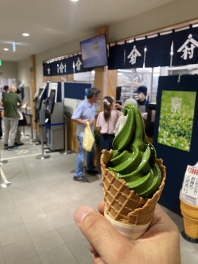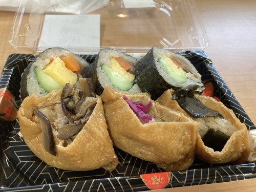 「Lika a Wind」で紹介されていた抹茶ソフトクリームをまず食べてみる。600円は高いけれど、確かに濃厚で美味しかった。食堂は混んでいたので物産で売っていた「村茶助六寿司」を買ってみたら、これが美味しい事!私は特別田舎寿司が好きという訳ではないのだが、この寿司はほうじ茶ベース(と説明書)の出汁がしっかり効いていて味わい深く、これで税込