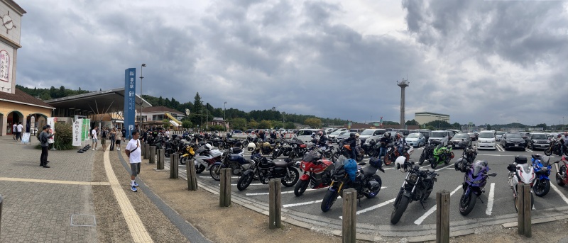 駐車場に戻ると「九州からお越しですか?」とライダーから声を掛けられた。福岡ナンバーは特に連休等だとこうして声を掛けられる機会が多い。その方この日は50ccだったが普段はZX-14Rと旧V-MAXを乗られているとの事。暫し旧いバイクの情報交換をさせて貰った。この辺りはソロツーリングのメリットだ。